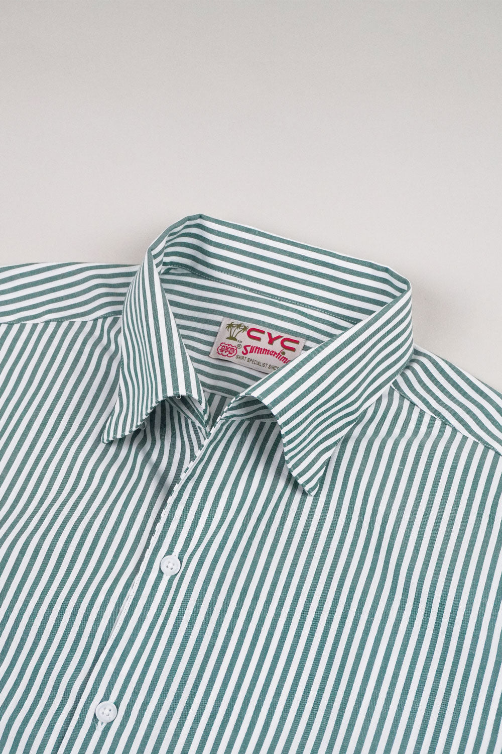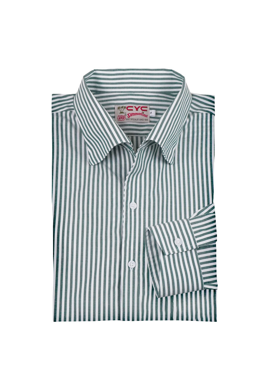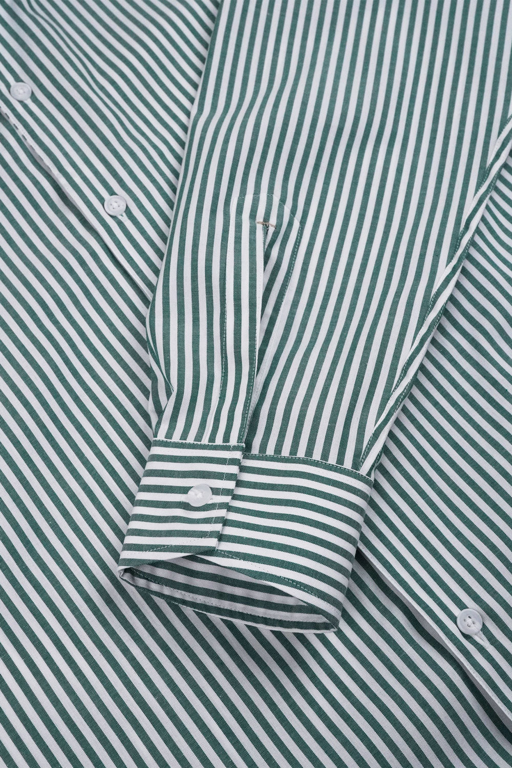 This business shirt is crafted from fine Egyptian cotton woven in crisp green and white stripes, offering a fresh interpretation of classic shirting. Renowned for its superior softness and strength, the fabric feels smooth and breathable against the skin, providing all-day comfort while maintaining a structured, polished look. Its subtle sheen and refined pattern make it equally suited for professional and smart-casual occasions.