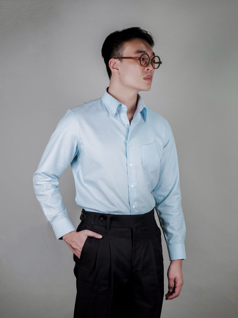 Add some flair to your wardrobe with our plain Yoga Oxford Button Down Shirt.