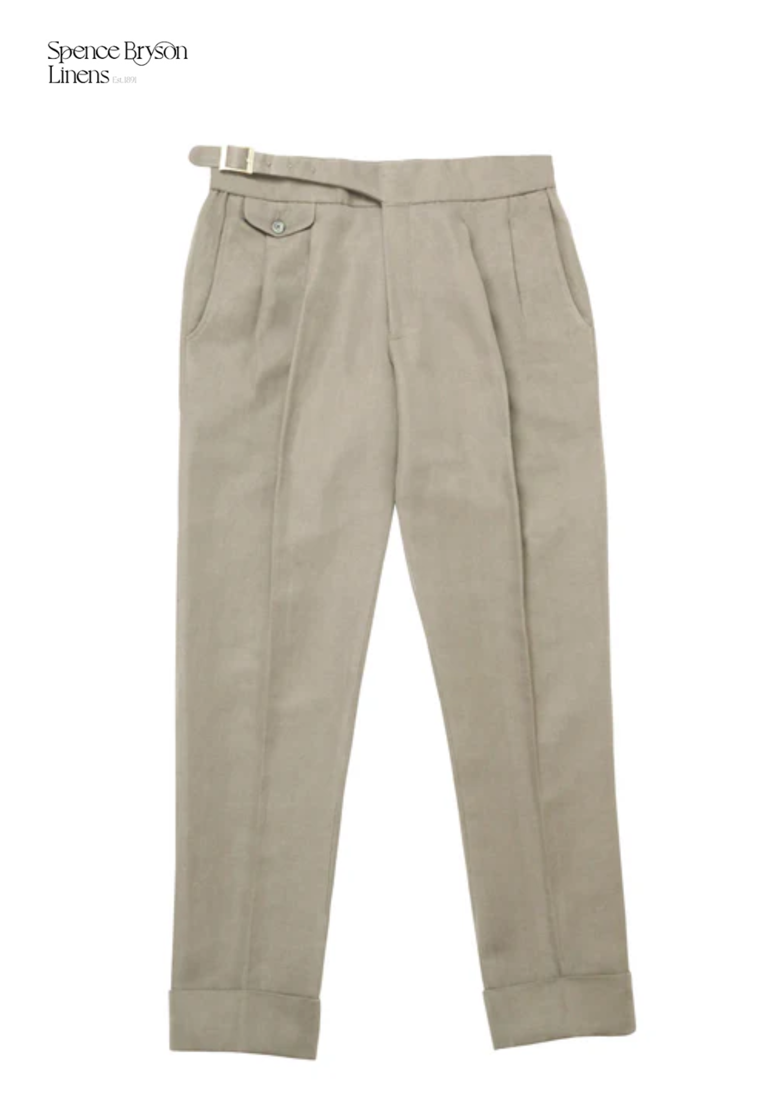 Made with the finest Spence Bryson Irish linen, the trousers are both durable and comfortable, thanks to the linen's breathable property.