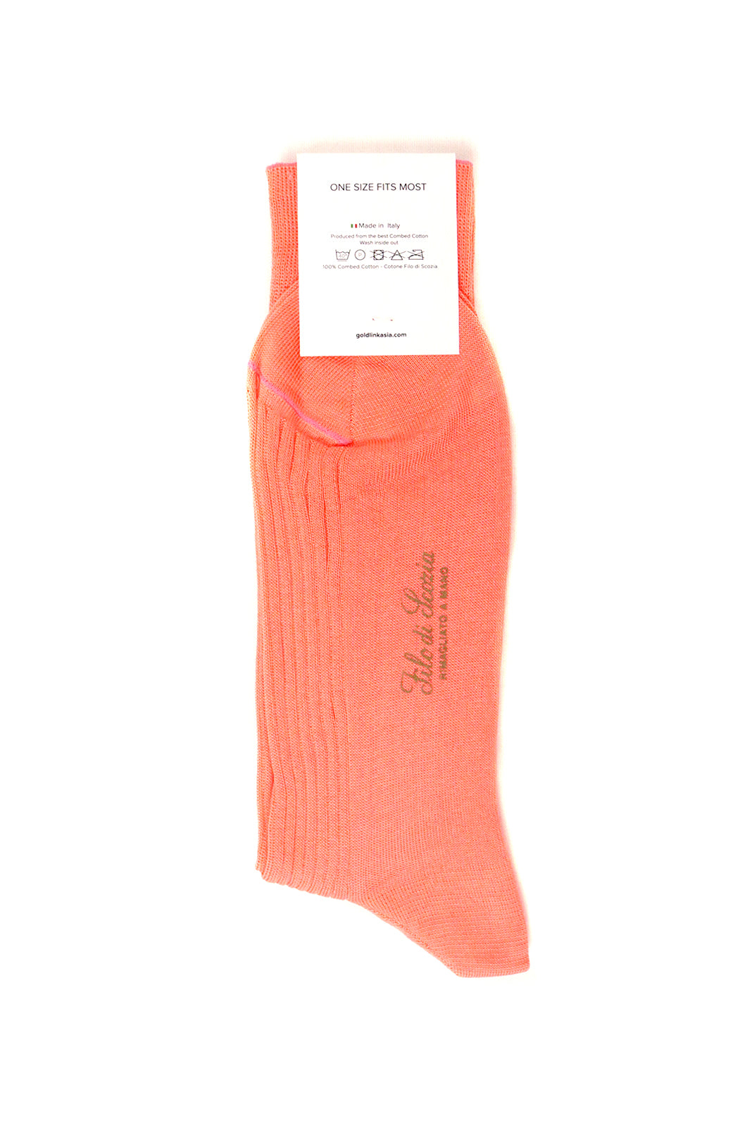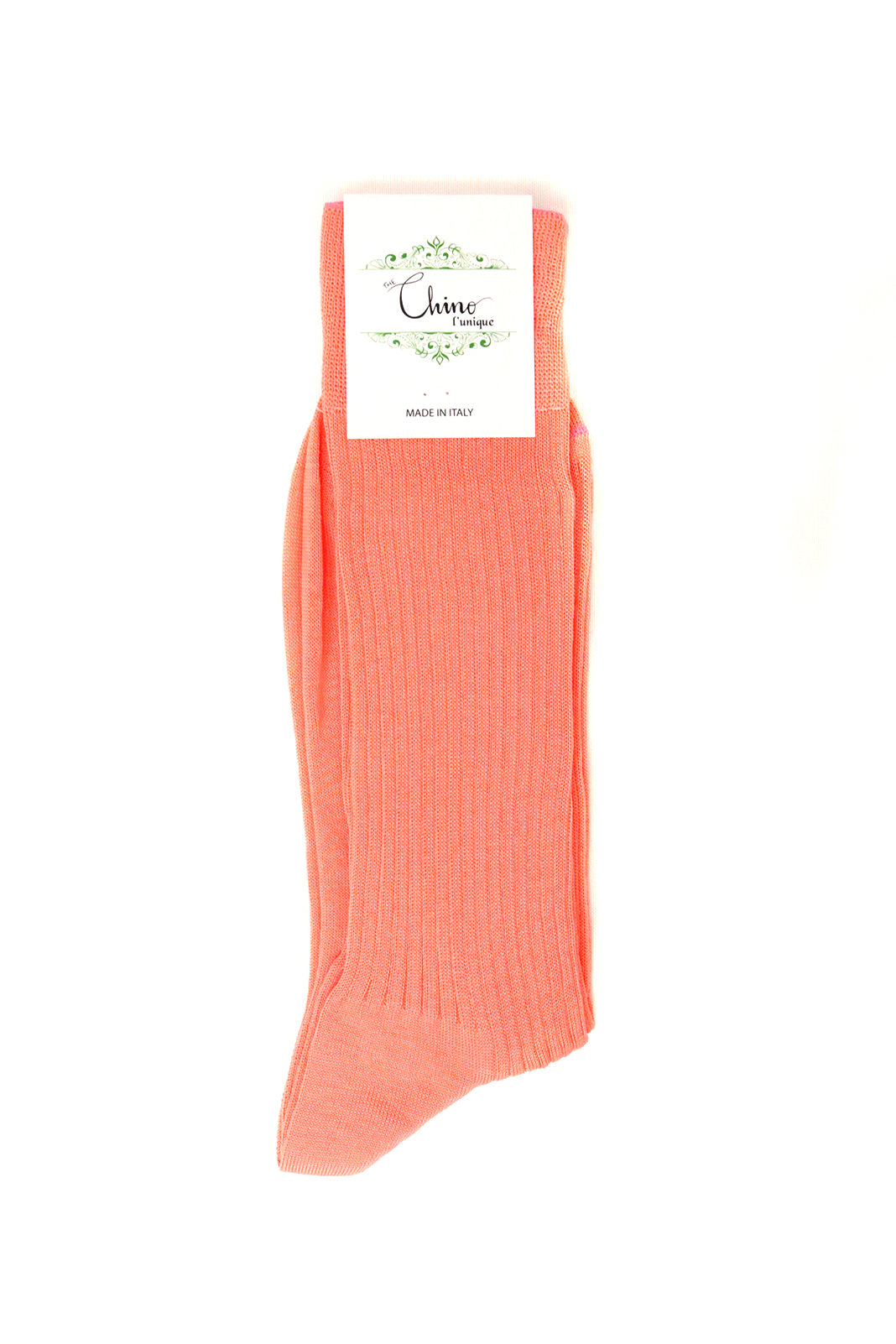 Take your outfits from day to night with these pair of calming coral ribbed dress socks. Complete your look with a pastel pair of trousers or under a cuffed jeans.