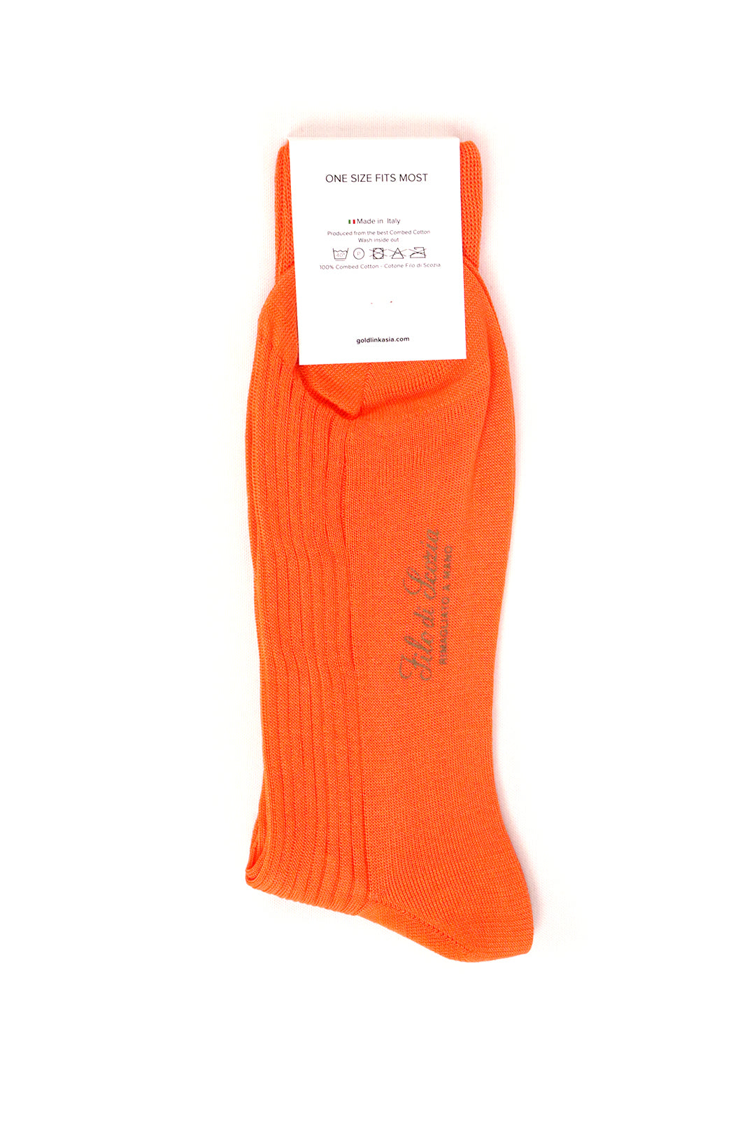 Take your outfits from day to night with these pair of poppy orange ribbed dress socks. Warm it up with golden undertones trousers and you are all set to start your day.