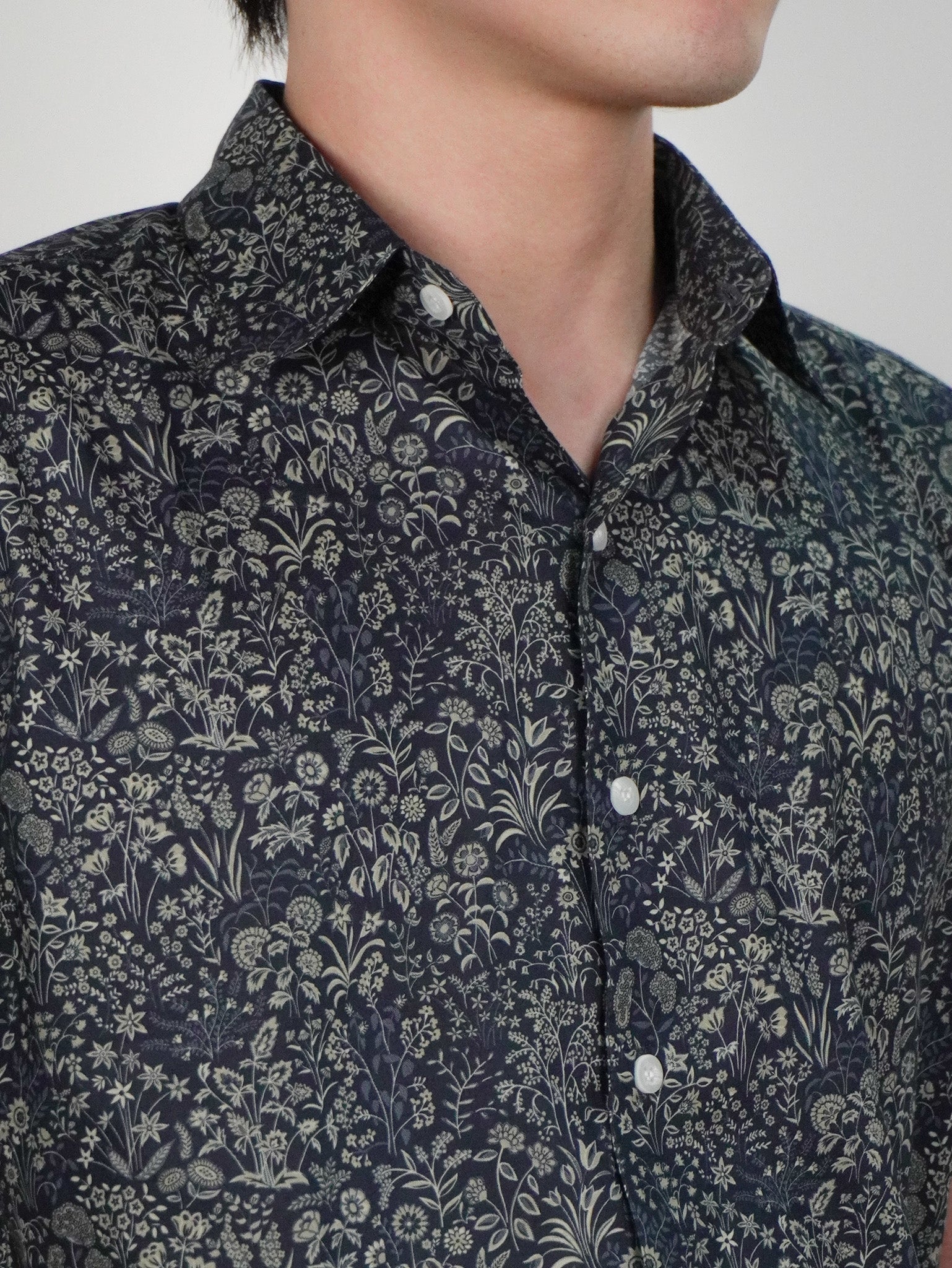 Crafted from Liberty's renowned Tana Lawn, this short-sleeved shirt features the timeless Shepherdley Lullaby print in a striking monochromatic palette that brings understated elegance to warm-weather dressing. The fabric's exceptional lightness and breathability make it an ideal choice for Singapore's tropical climate, offering comfort without compromise. A refined piece that transitions effortlessly from casual to smart-casual occasions.