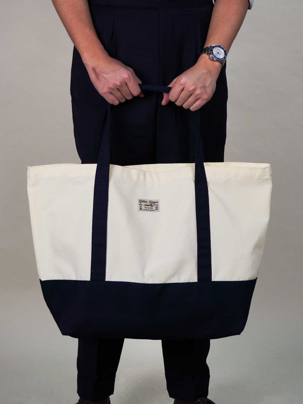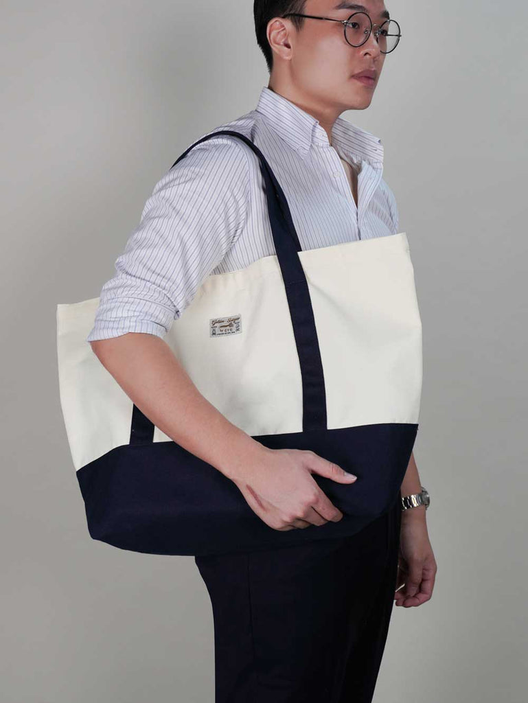 Elevate your everyday essentials with this tote bag. This large two-tone canvas tote pairs a natural-coloured body with blue accents on the handles and base for a clean, everyday look. Cut from sturdy canvas with a spacious main compartment, it’s made for leisure. A quiet nod to our history comes through in the archive-inspired labels—faithful reproductions of CYC labels from over the years.