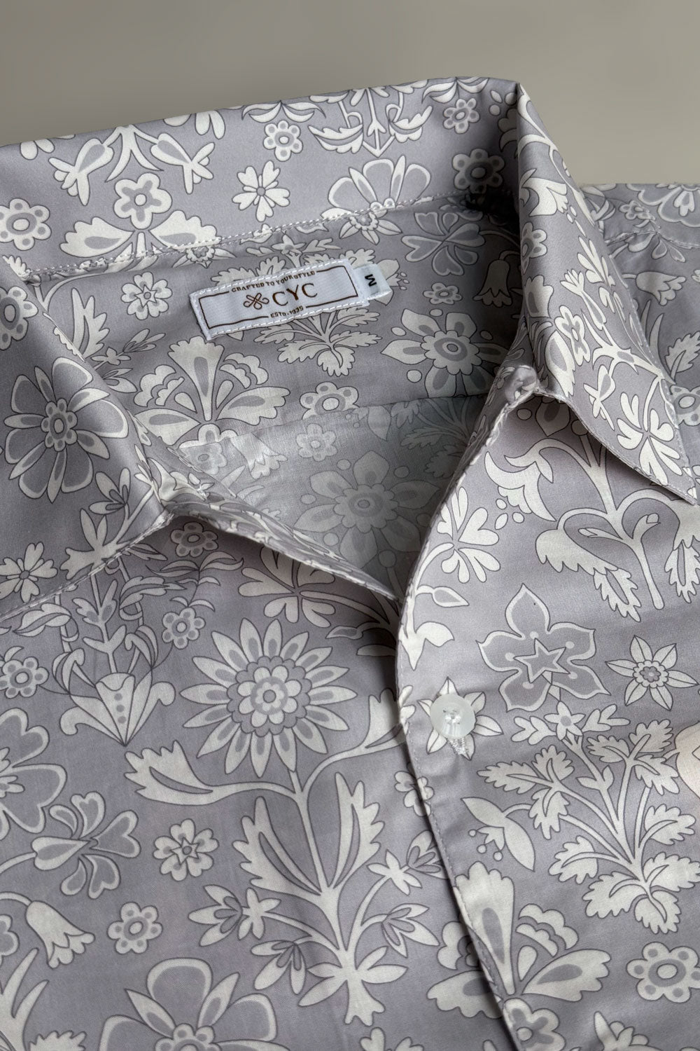 This Grey Marlow Mono Short Sleeve Shirt is made with Liberty Fabrics' signature Tana Lawn — a finely woven cotton that feels impossibly light and breathable. The monochromatic grey and white print provides understated visual depth without demanding attention.