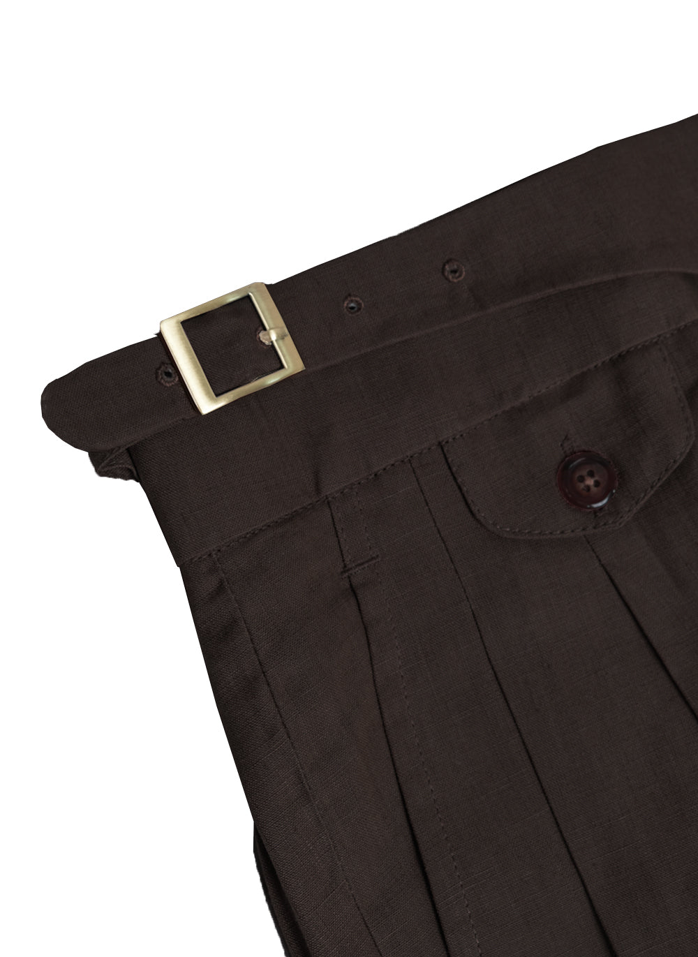 Our 1935 Gurkha trousers feature a matching buckle construction at the front, so you can adjust the waistline to fit you just right. Feeling too full after a hearty meal? Simply release your waistband to the next eyelet, so you can stay comfortable throughout the day.