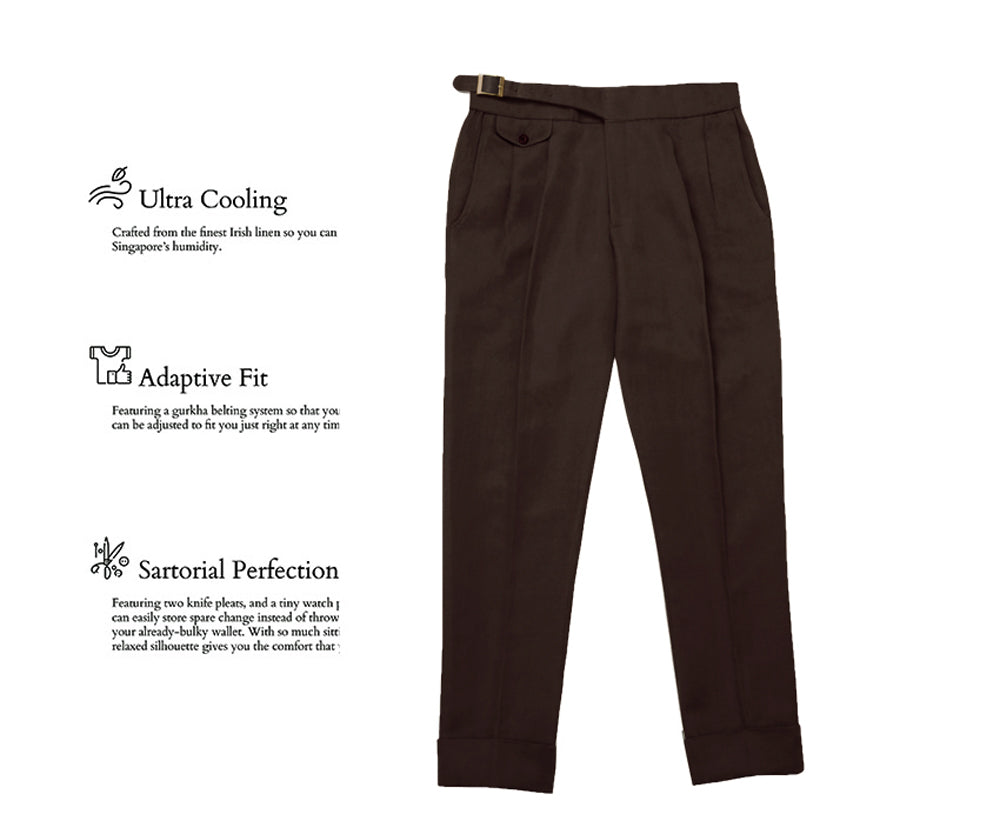 Made with the finest Spence Bryson Irish linen, the trousers are both durable and comfortable, thanks to the linen's breathable property.
